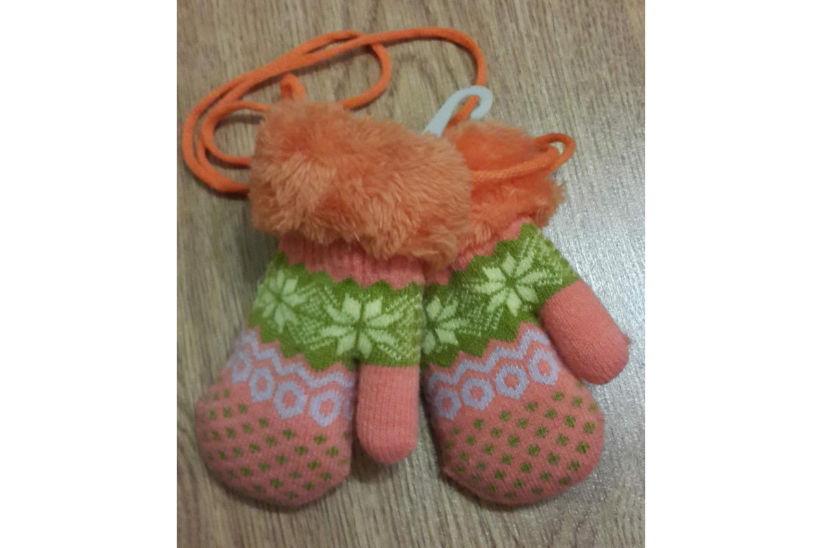 Детские зимние рукавички 6 мес - 2 года. Теплые, мягкие на веревочке Оранжевый